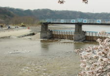 かつては原生林を伐採した「青梅材」は次第に人工造林によるスギやヒノキに代わり、伐採・造材・搬出も江戸商人から地元資本に移るようになった。 ところが、享保3年(1718)、これまで認めてきた筏通行を幕府は突然禁止した。筏の激増で堰の川底がえぐられ、多摩川本流の水量が多くなり、玉川上水の取水量が減ったためだが、「享保の改革」で武蔵野新田の開発が進められ、それへの水の需要が急増したことも背景にある。 幕府は「玉川上水堰往来之輩あらは曲事たるへき者也」という高札を立てた。筏師たちは堰の上流で筏を引き揚げ、川原を運搬するほかなかった。そのため人手や出費が相当かかり、水番人を買収してこっそり堰を通過させてもらった筏師もいたようだ。 筏師たちは、それぞれの村の名主を動かして堰通過を再開するように運動した。第一段として堰から10間(18b)以上あれば筏を揚げてもよいことになったが、享保6年12月、水門から20間離れたところに幅4間、長さ2間の筏用水路が設置された。両側に水流制御の蛇籠を、底にケヤキの角材を並べて、その上を8寸(24a)の深さが流れるようにした。 |