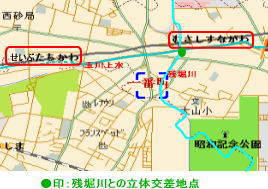その後、サイホンの原理を応用した「ふせこし」と呼ばれる工 法で再改修され、現在では川の下を上水が潜っている。