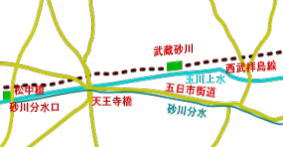 現在の砂川分水堰は、松中橋の上流に柴崎分水口 (立川分水)と並んで