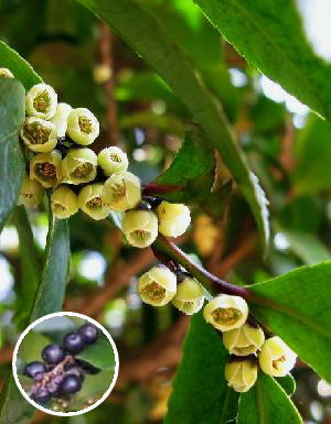 晩秋から正月過ぎにかけて正露丸のような黒い実をびっしり付けた樹木を上水堤で時折り目にした。 ヒサカキは照葉樹林帯では広く分布する低木または亜高木の常緑樹だそうで乾燥にも強く、早春の花の少ない頃に開花して虫によって効率的な花粉媒介を行い、冬の果実の少ない頃に野鳥により種子を散布するので生育範囲が大変広い。 サカキに似ている全体が小さいので姫榊、それが訛ってヒサカキという説と榊に似ているが榊でないという意味の『非ず』説がある。 花径も5ミリ前後で目立たないが、雄花は薄緑がかった白い花弁が5枚。雌花の5弁はやや紫色を帯び下向きに咲く雌雄異株だが、山火事や伐採などによって性転換することもあるらしい。 長楕円形状の濃緑色の葉は3〜8センチ長さで、榊にはないギザギザの鋸歯があるが、関東では榊の代用として売られ、神棚に供えられるとか。 |