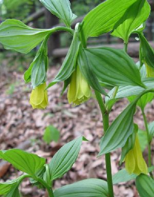 4月半ばの開花時期に撮影しておきながら、リストに加えるのが延び延びになってしまったキバナホウチャクソウ。 図鑑によるとユリ科チゴユリ属で、同時期に咲くホウチャクソウ(宝鐸草)と花も葉の姿も全く同じで、優美で神秘的な風情に惹きつけられた。 上水でも自生している宝鐸草の黄花種らしいが、園芸用として原産地の朝鮮半島か中国から渡来。耐寒性の多年草で、久右衛門橋下流左岸の堤に近年移植されたようだ。 自生していない野草や園芸種を移植するのは疑問があるが、市街地に隣接し、時代とともに推移していくのが“自然”とする考え方もあり、見守るしかないのが現状かも。 草丈は40〜50センチ、笹の葉を広く大きくしたような形の葉脈のはっきりとした葉もふくよかで瑞々しい。 花は俯いて開花し、風鐸に似た筒型花弁の先を少しだけ開く。筒の長さは3〜4センチ、別名キバナアマドコロ、あるいはコガネホウチャクソウ。 |