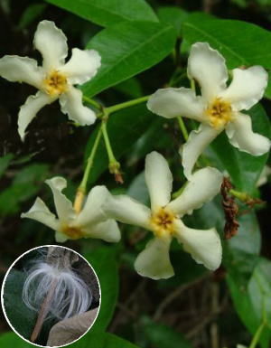 ![]() 円内は落下傘状のテイカカズラの種子 2〜3センチ大 |